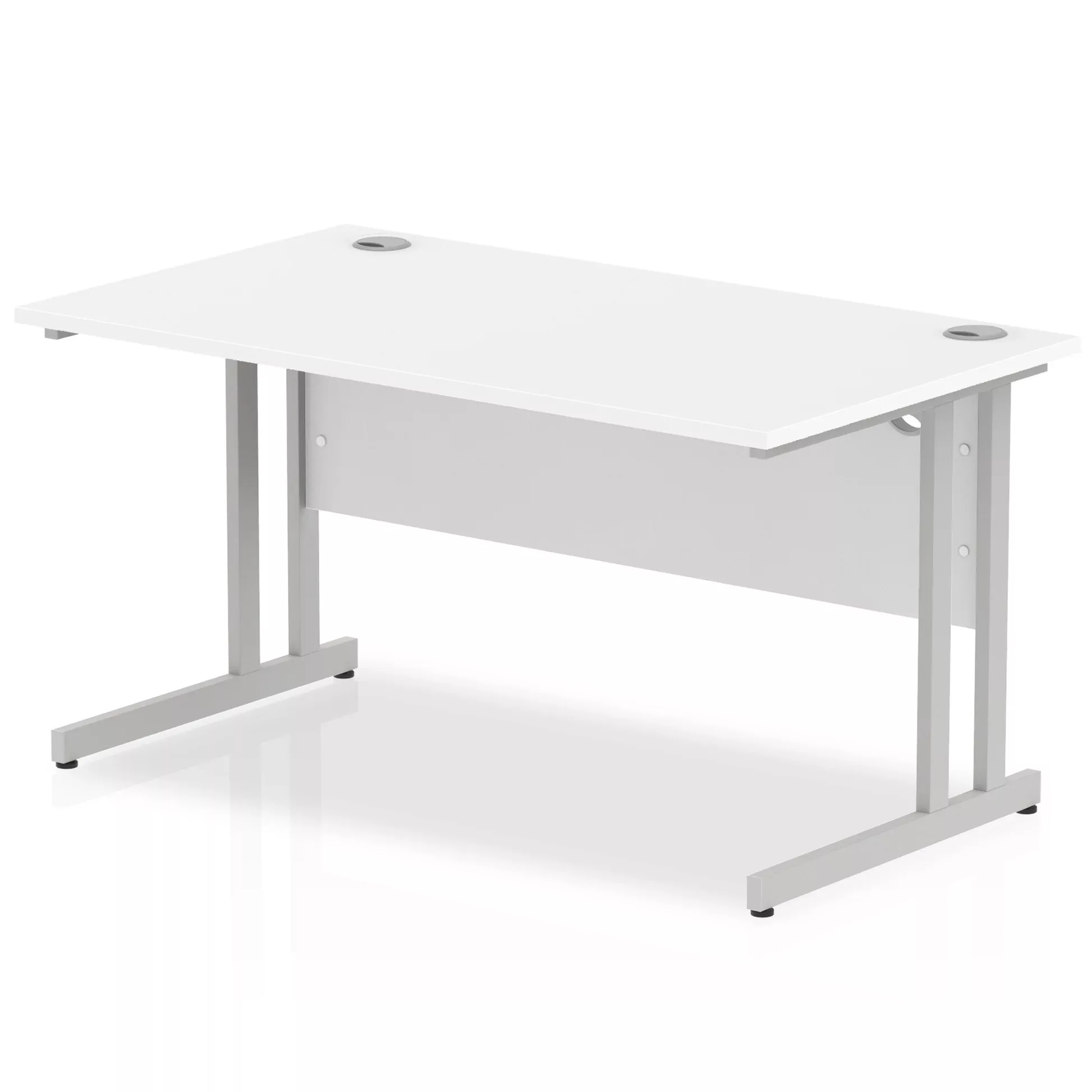 1400 rectangular desk with double spoke silver cantilever leg. Silver frame complete with adjustable feet.